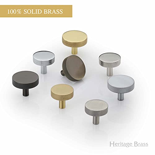 - LUXURY CABINET KNOB: Add elegance to your home with Heritage Brass. Our Knurled Disc Knob is ideal for doors and drawers on cabinets, cupboards, wardrobes and furniture. Your purchase includes 1 brass cabinet knob and all necessary M4 fixing screws and fasteners for easy home installation