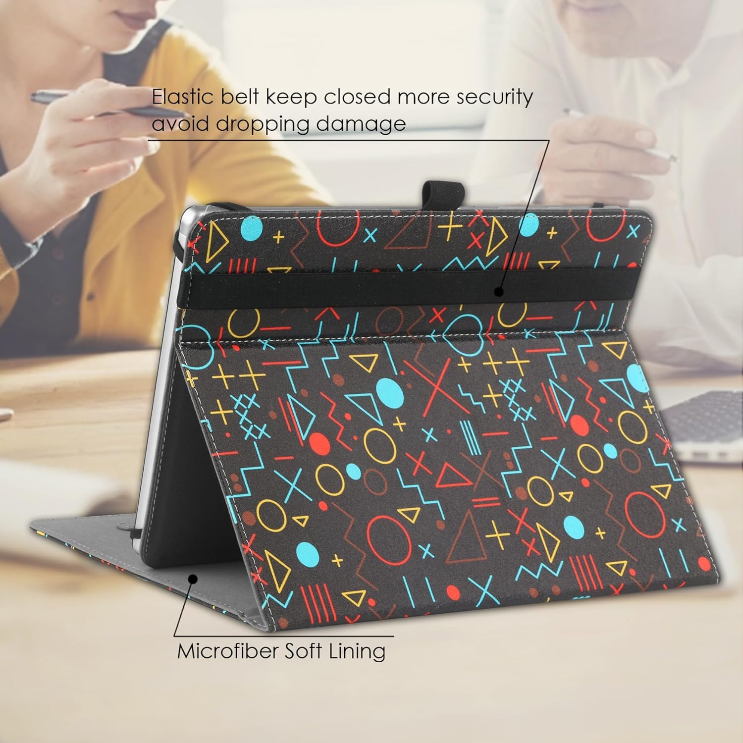 - 【 HIGH QUALITY MATERIAL 】-10 inch tablet case android with premium synthetic PU leather exterior protect the tablet from scratches, impacts, dust or any other daily damage.The Outside Elastic band secures the case closure, easy snap on and off,The internal hand strap for comfortable one-handed use