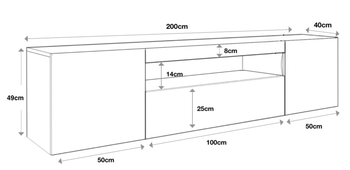 - Dimensions (WxHxD): TV stand- 200x49x40cm, Display Cabinets- 30x120x25cm