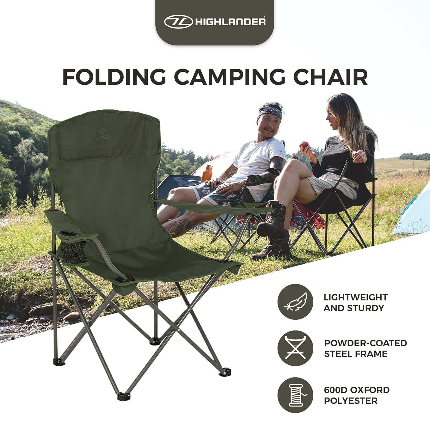 5673 reviews for Highlander Camping Chair – Compact & Lightweight Folding Chair, 2.2kg, Portable Chair for Outdoors, Durable Steel Frame Arm Chair with Cup Holder