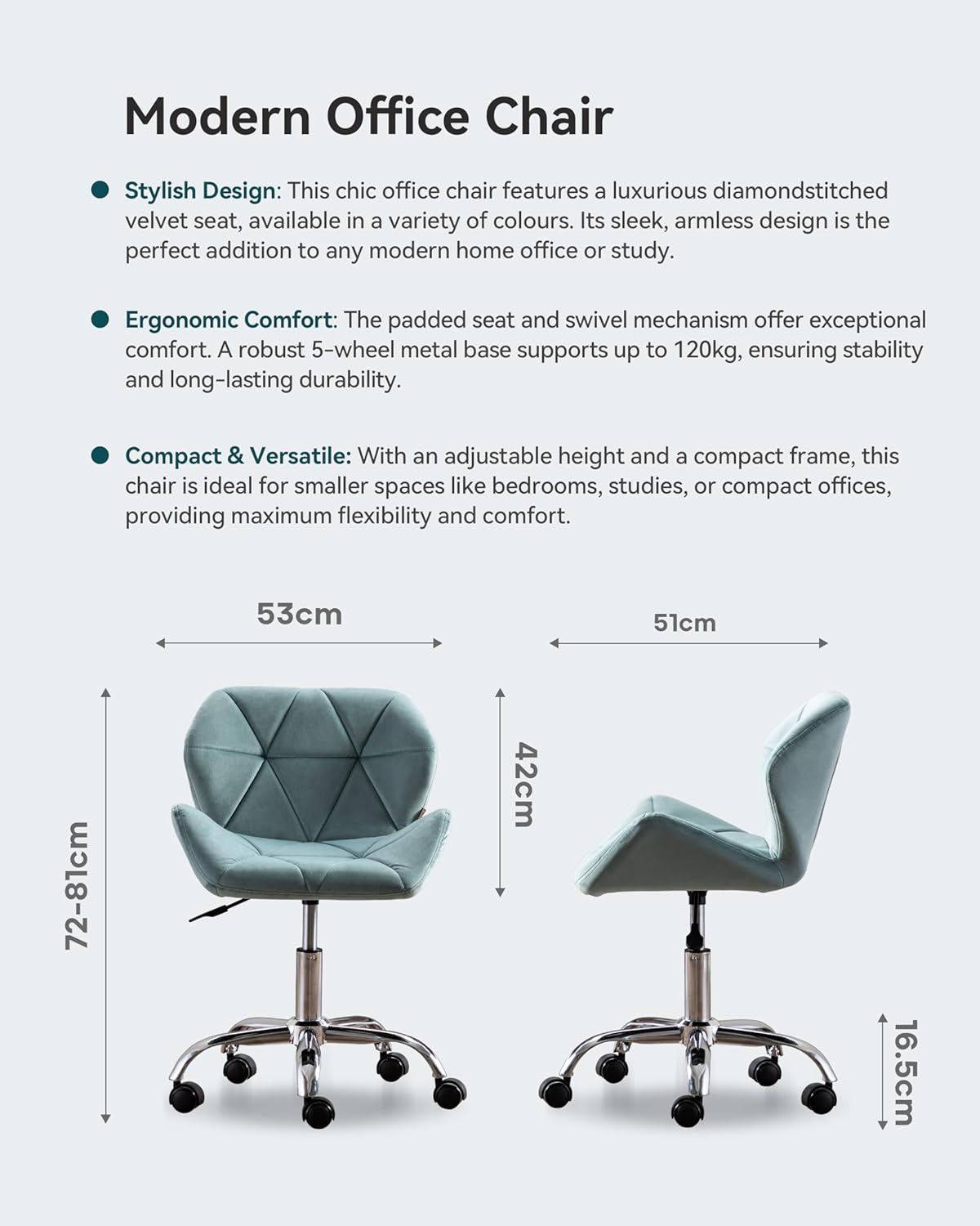 - Padded Seat, armless design for a chic look, Suitable for home bedroom or office use