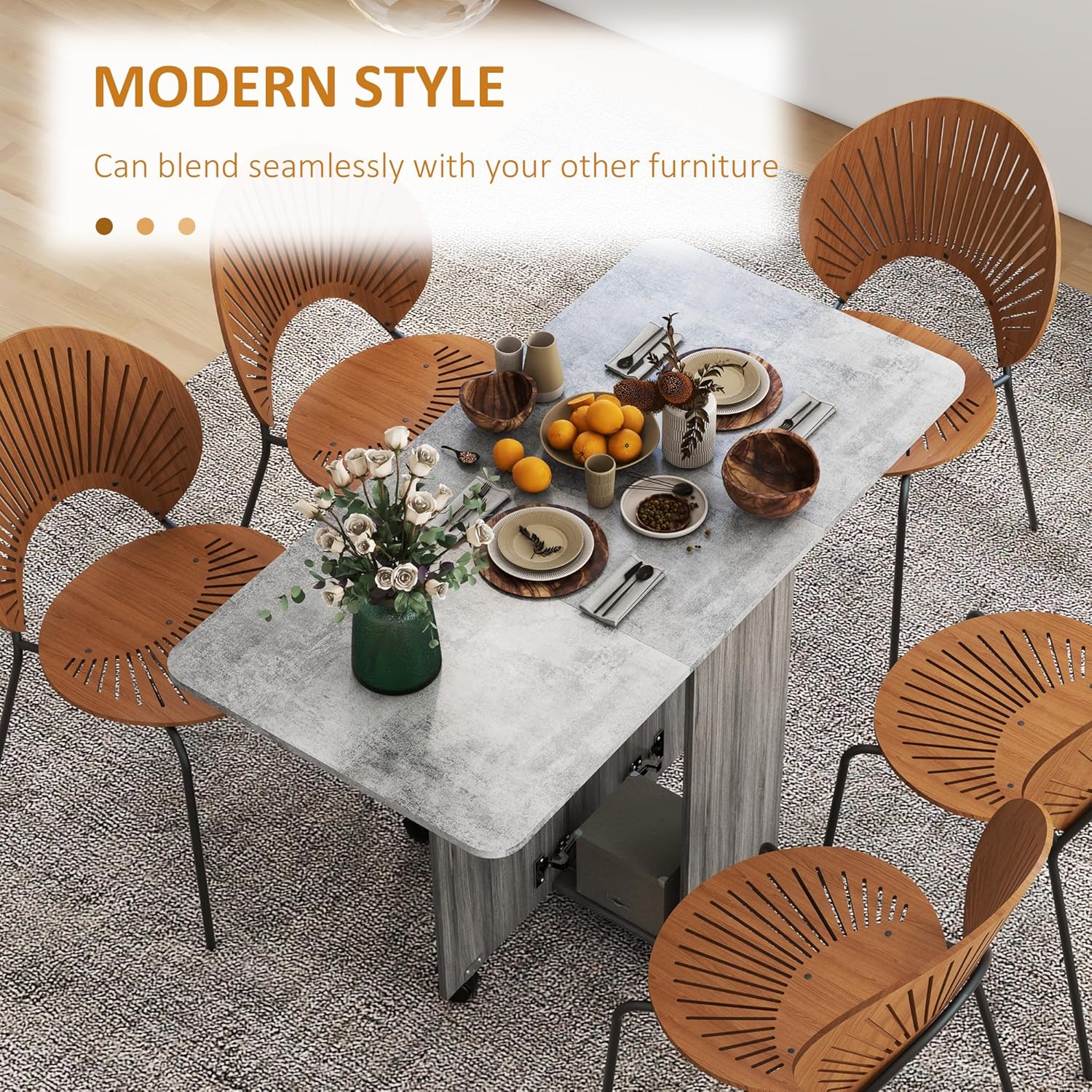 • Six wheels: Move this foldable dining table around easily. Four wheels come with brakes to keep the small kitchen table standing in place.