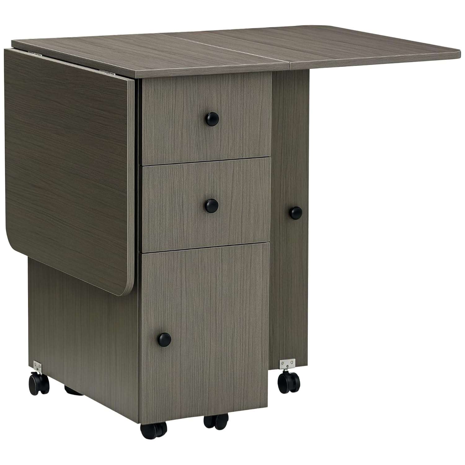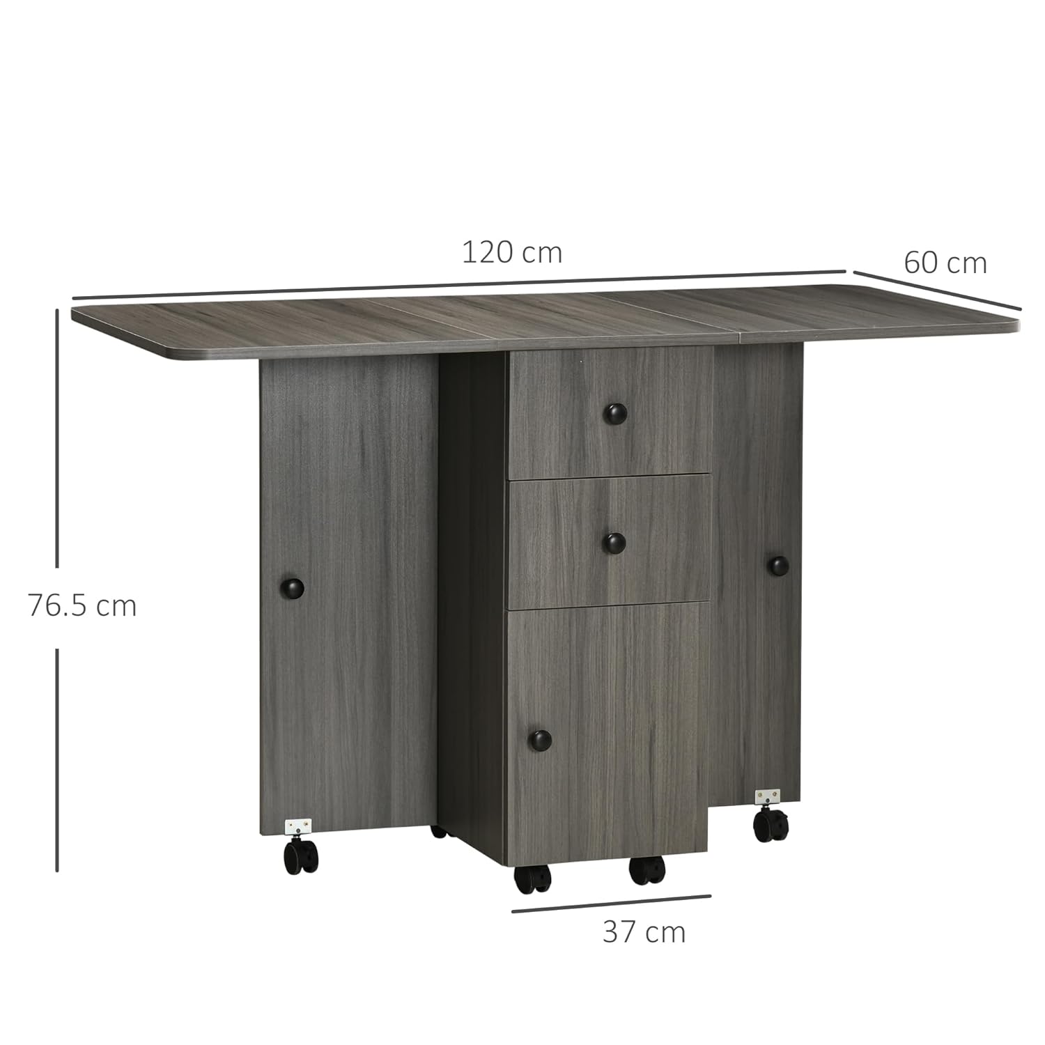 HOMCOM Folding Dining Table for 4-6, Rolling Drop Leaf Table on Wheels with Storage Drawers, Cabinet and Open Shelf for Kitchen, Dining Room, Grey