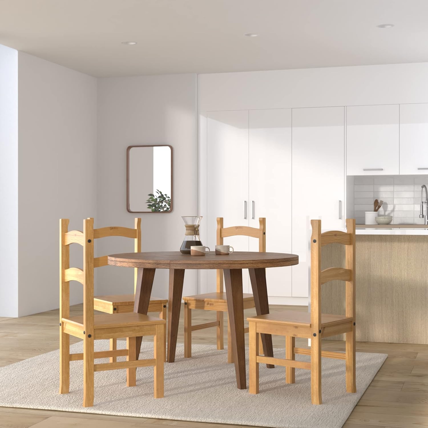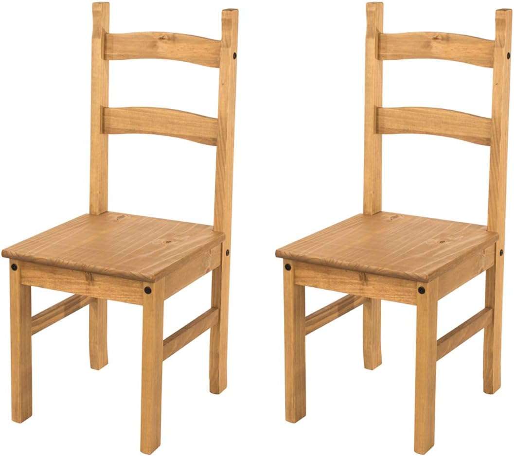 - RUSTIC CHARM: This pair of two dining chairs is a delightful addition to our Corona collection. Crafted from solid wood, they exude rustic charm with natural variations in shading, woodgrain, and knots, showcasing the beauty of pine’s natural characteristics