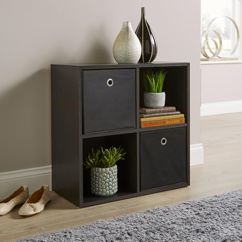 Home Source Storage Cube 4 Shelf Bookcase Wooden Display Unit, Black, 60cm