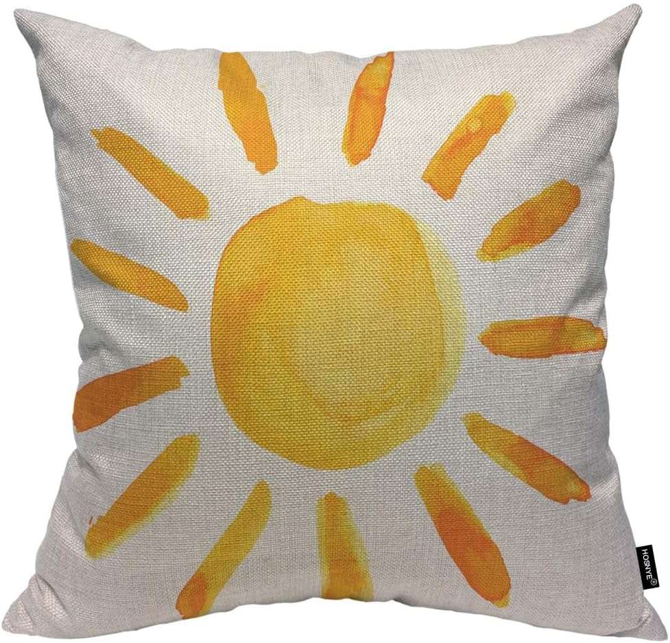 HOSNYE Yellow Sun Throw Pillow Cushion CoversWatercolor Bright Decorative Square Accent Pillow Case 18 x18 inch