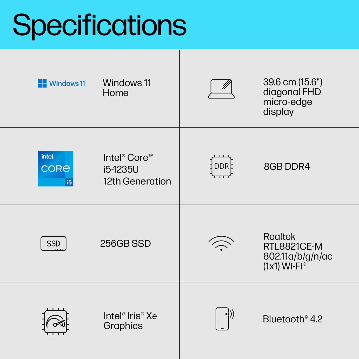 HP 15s-fq5021na 15.6in i5 8GB 256GB Laptop Bundle – Silver