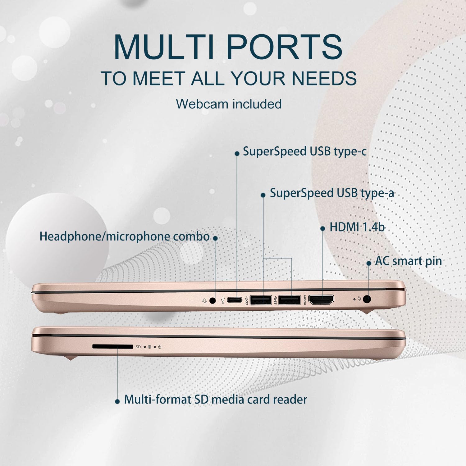 HP Stream 14 Inch HD Laptop, Intel Celeron N4020 Processor, 16GB DDR4 RAM, 64GB SSD, Intel HD Graphics, 720p, 1 Year Office 365, Rose Gold, Win 11 S, Alpacatec MicroSD
