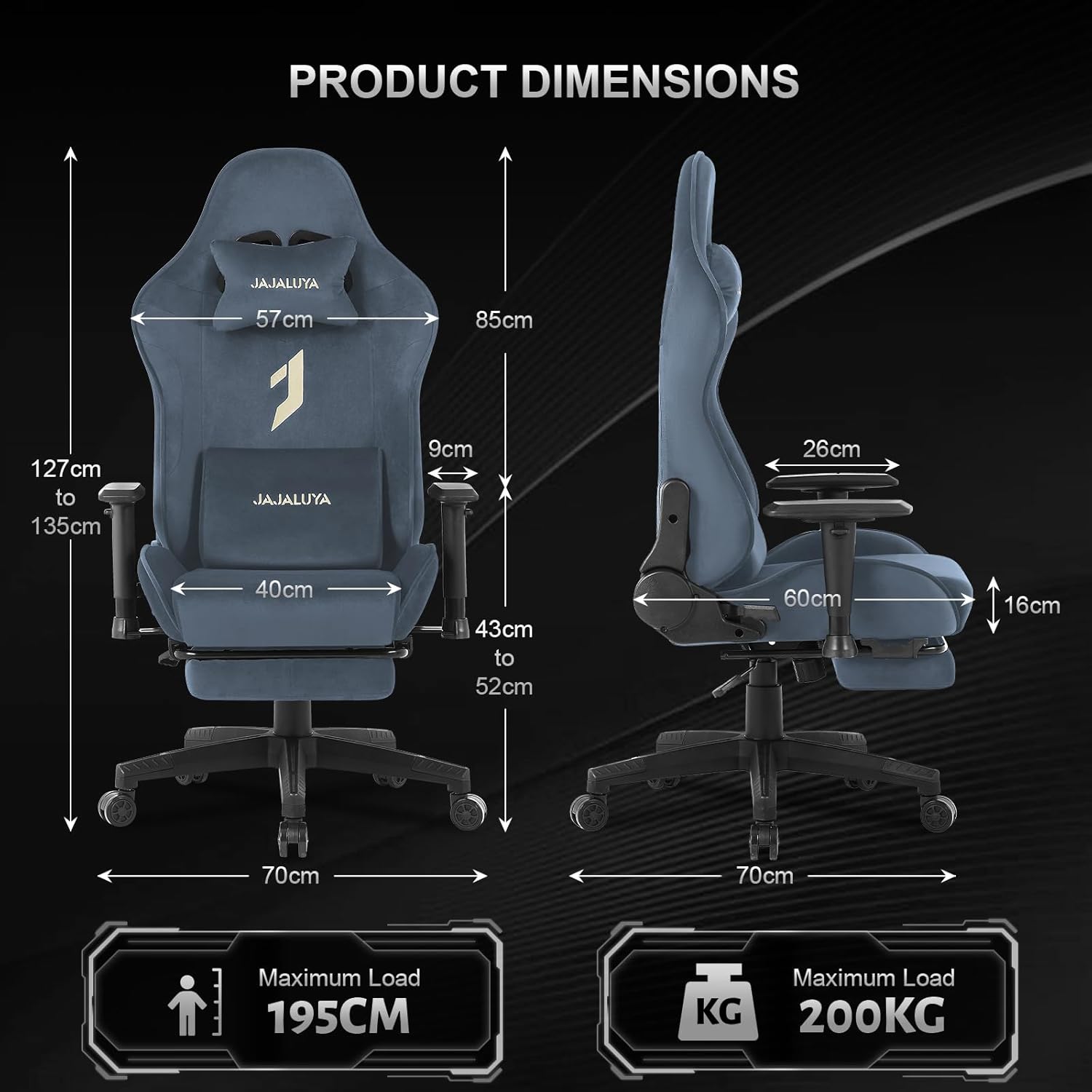 - 【Adjustable Gaming Chair】: You can effortlessly transition between work, gaming, and leisure thanks to the chair’s adjustable backrest, which can be adjusted from 90° to 155°. You don’t have to be concerned about the pc chair not fitting your height because the Class 3 gas lift allows for individual height adjustment.