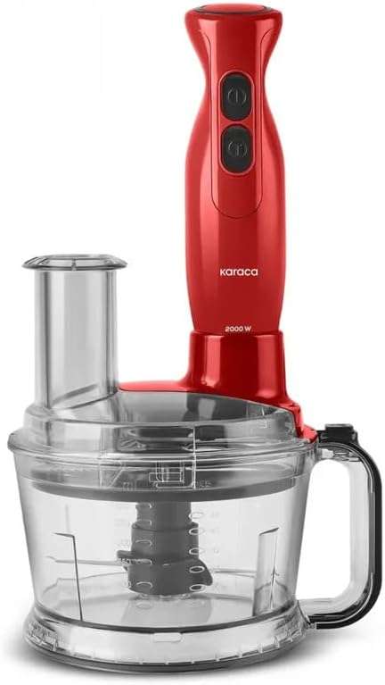 Karaca Pro-Multimax Food Processor, 2000W, Blender, Mixer, Ice Crushing, Nonslip Stand, Large Capacity, Cake Mixer, Chopping, Whisking, Red