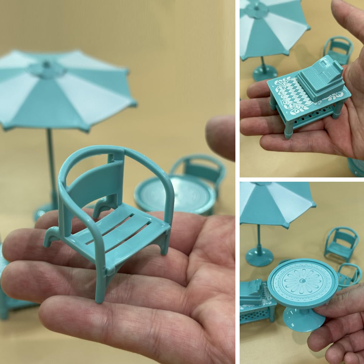 2 reviews for KARLOR miniature parasol table chairs set, 8 Pcs mini furniture set, parasol table chairs advertising boards cash registers, small ornaments mini restaurants dollhouse garden…