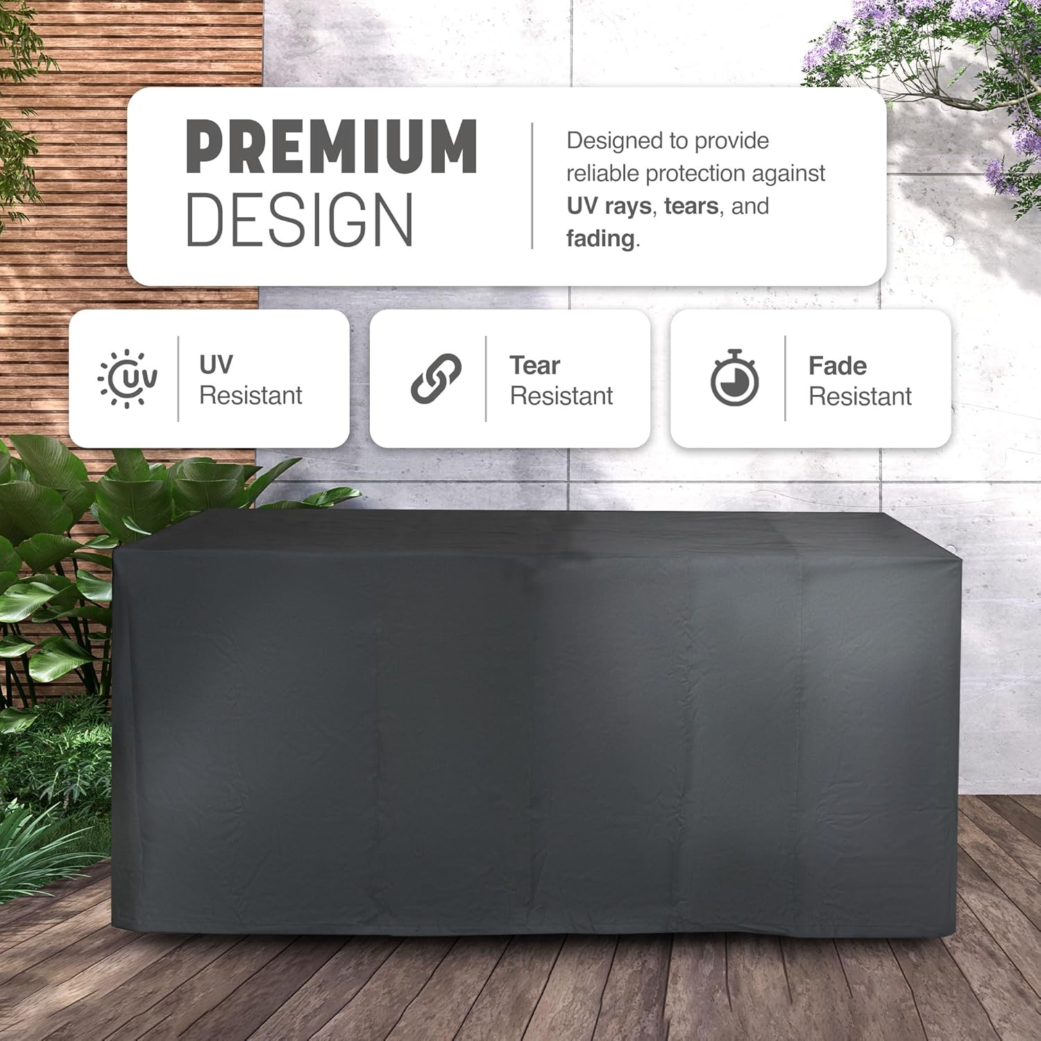 - The KEPLIN garden sofa cover is designed to provide reliable protection against UV rays, tears, and fading. Its UV-resistant material ensures that your furniture stays safe from the harmful effects of sun exposure. The tear-resistant construction adds an extra layer of durability, guarding against accidental damage.