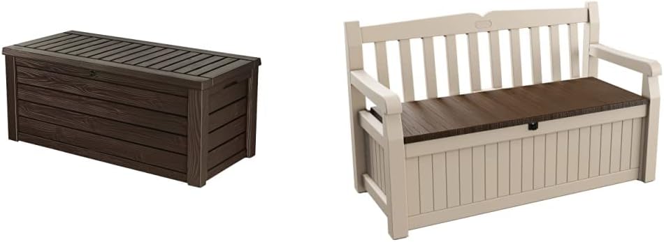 Keter 247660 Westwood 570L Outdoor Storage Box – Brown & Eden Bench 265L Outdoor Garden Storage Box Garden Furniture – Beige and Brown