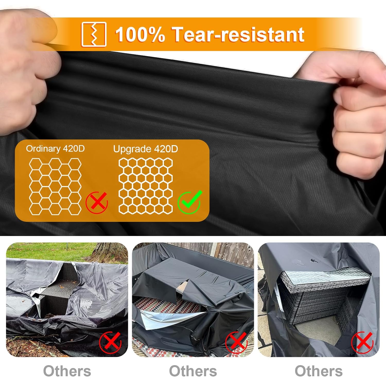 - 【Tear & UV Resistant】Kipiea extra large rattan garden furniture covers is made of high-density 128 GSM 420D Oxford Fabric. It’s also features double-layer PU waterproof and anti-UV-ressistance coating. This premium material blocks 99.99% of UV rays, ensuring exceptional endurance against tears and fading, and keeps your furniture looking new