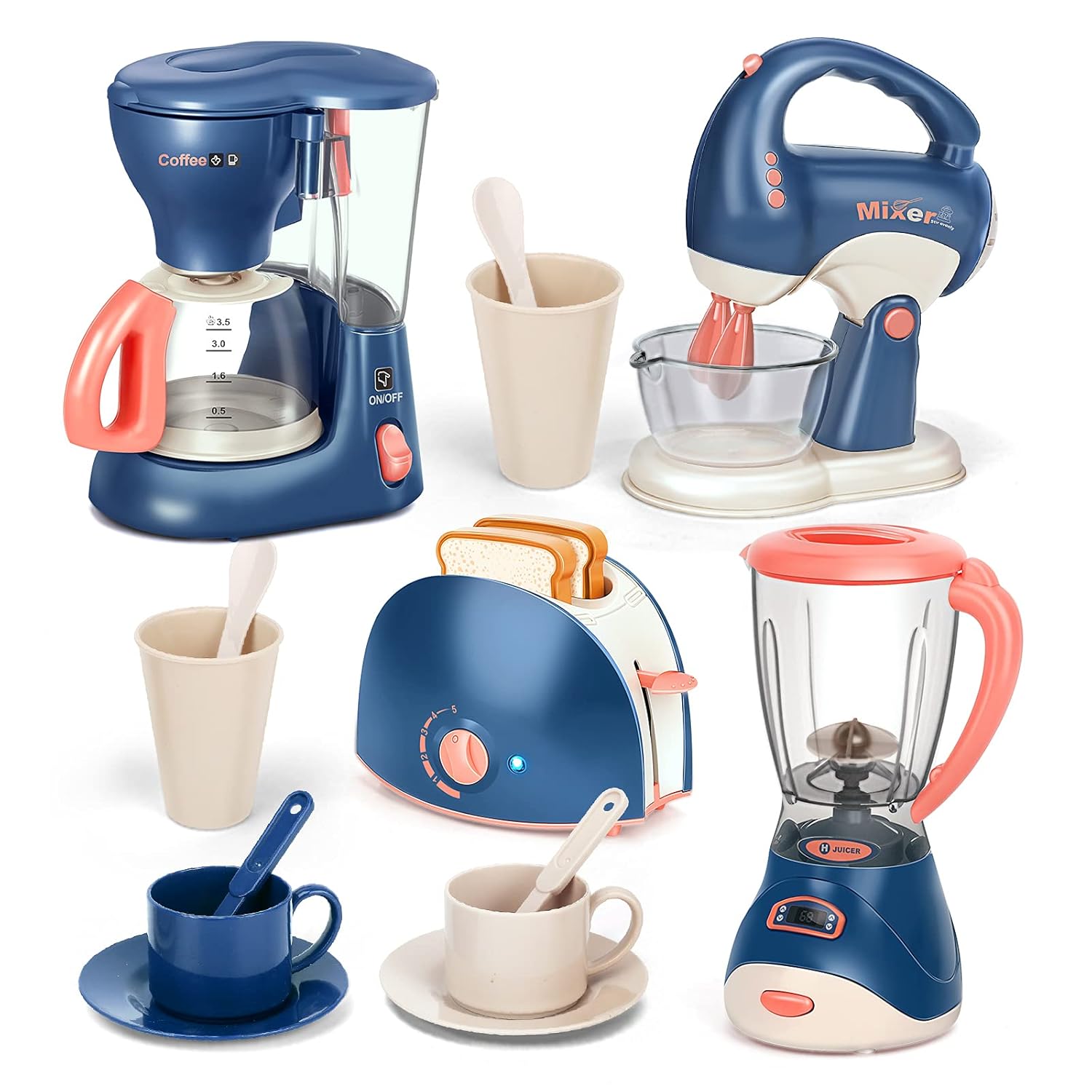 - PRETEND KITCHEN TOY: Kitchen Appliance Toy Set included coffee machine, blender, mixer, toaster and tablewares. Let children build their knowledge about kitchen accessories and enjoy funny time