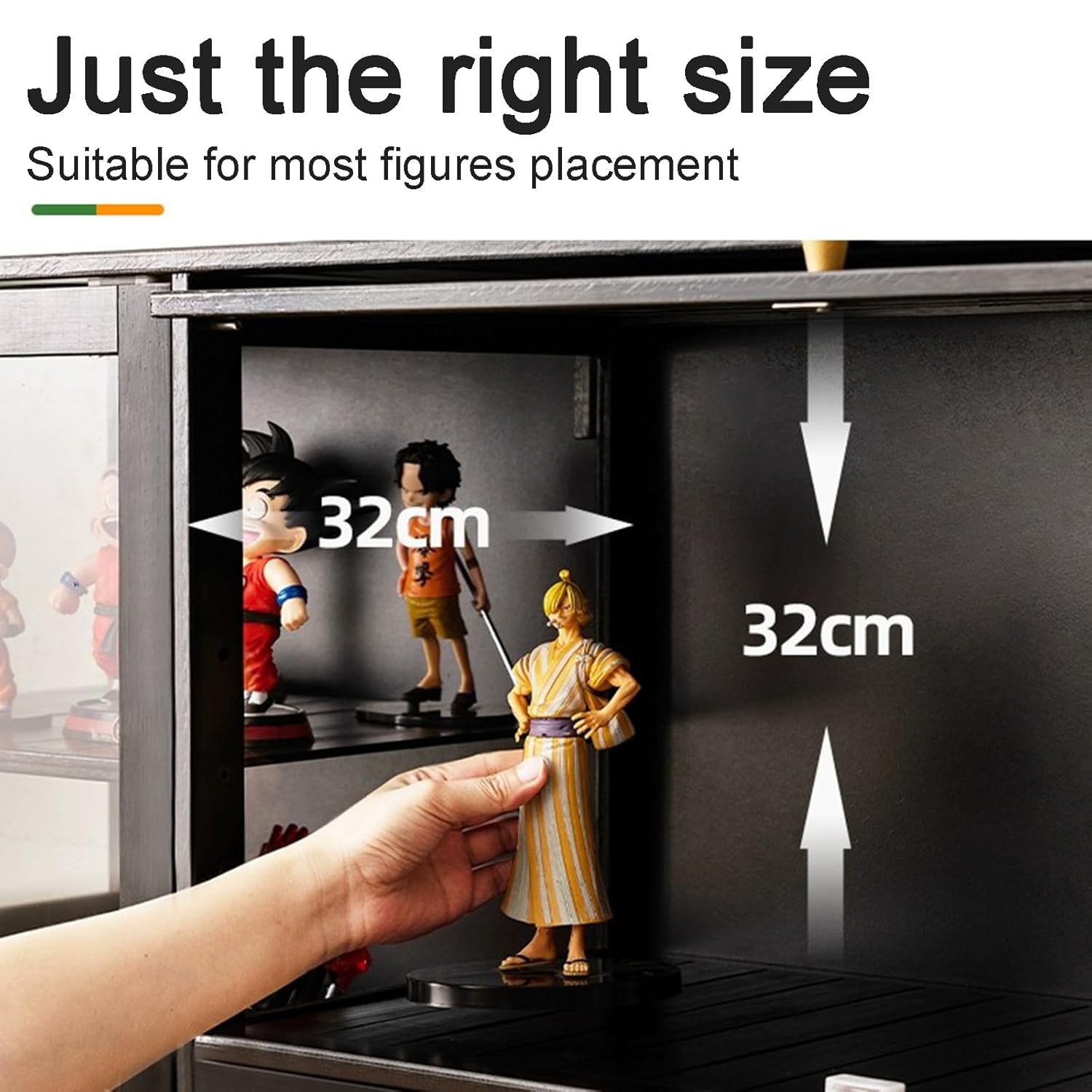 KUYATE Natural Bamboo Frame Curio Cabinet With Acrylic Glass Door, Modern Minimalist Flip Door Display Case, L135*W33*H111cm Black