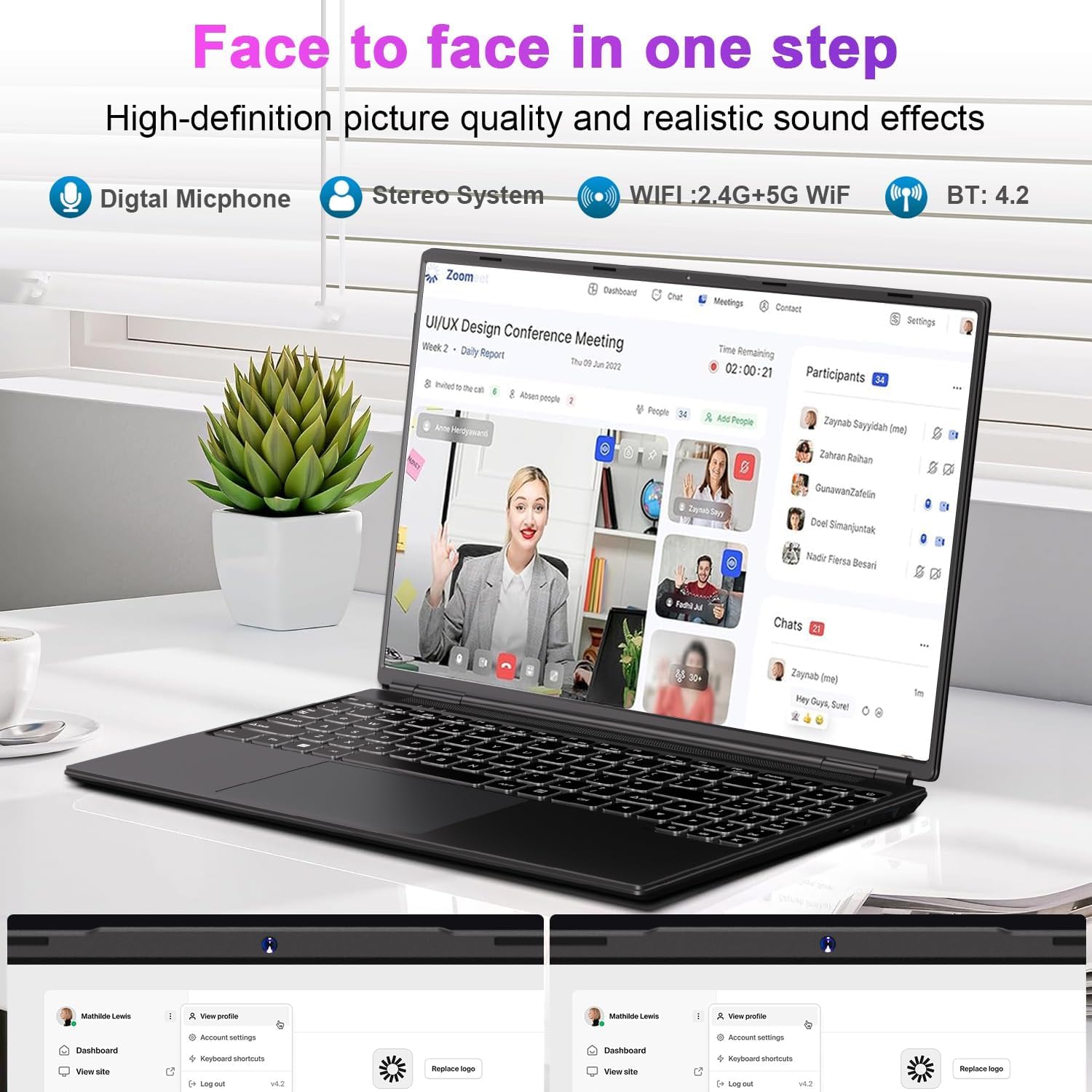 Laptop 16″ Celeron N5095 (Up to 2.9GHz) 12GB RAM 512GB SSD Win11 Laptops Support 1TB SSD & 512GB TF Expansion | FHD 1920×1200 | Webcam | Long Battery Life | Black | For Students…
