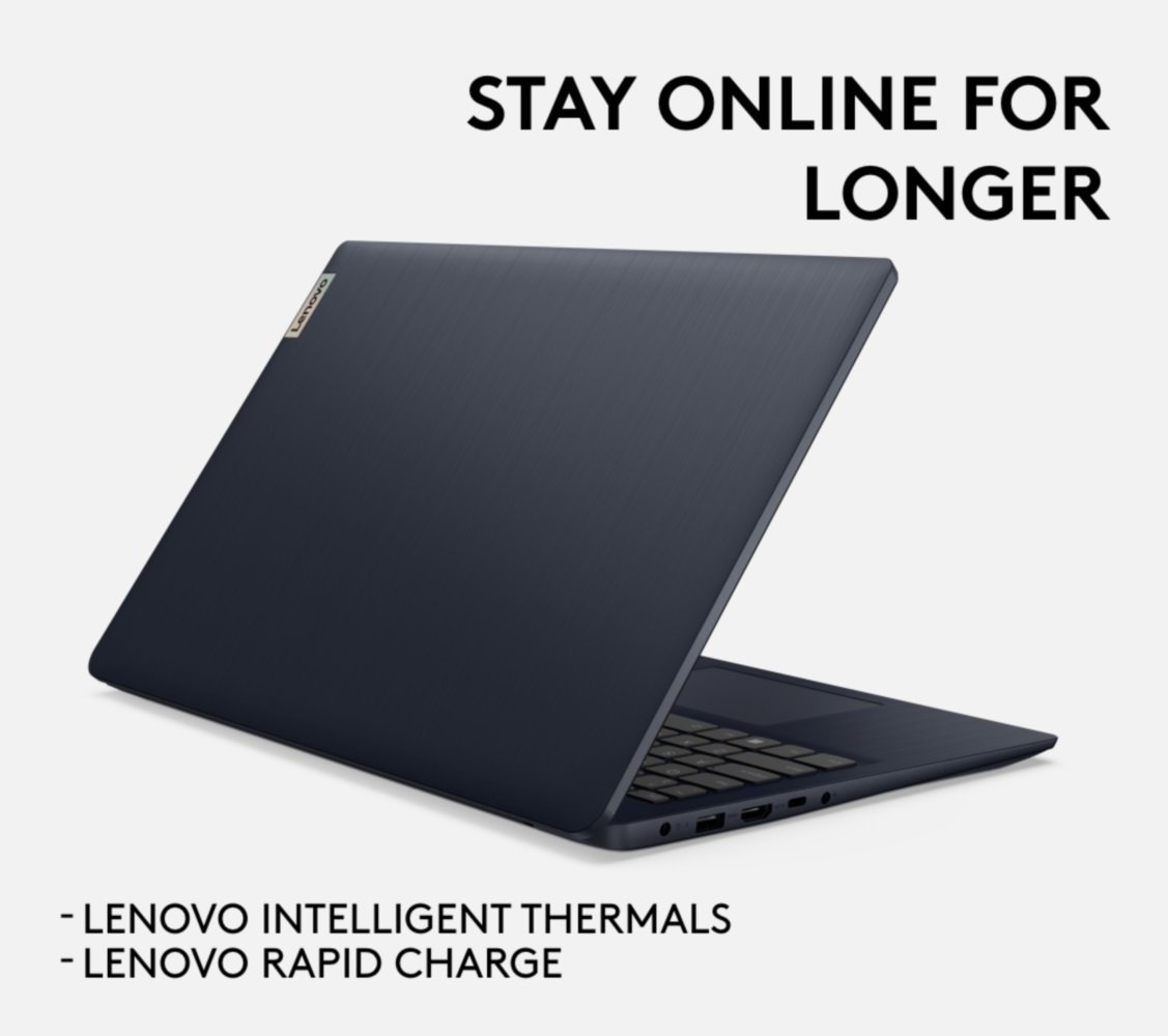 At an exceptionally slim 19.9 mm, the IdeaPad 3 is easy to carry. Its sleek hairline-sheet cover comes in Abyss Blue.