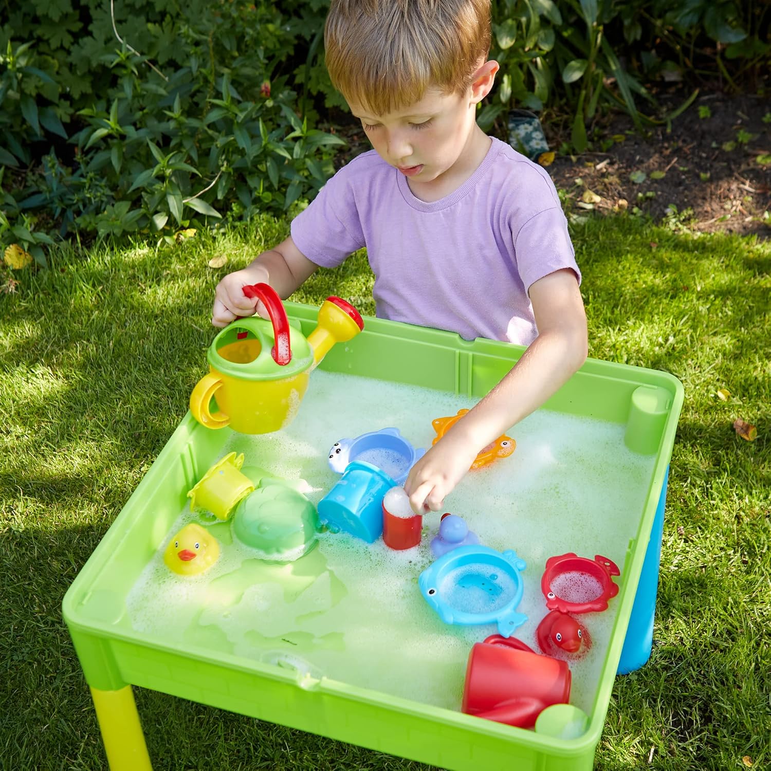 - VALUE: In addition, the base of the table is deep enough to store small toys, books, and games, including building blocks – and so is great for keeping your play area clutter free. The base is also perfect for sand and water play. Let your child’s imagination go wild as they build sandcastles or splash around in the water. The table comes equipped with a plug, so it is easy to clean and drain. Ideal for indoors and outdoors – simply wipes clean