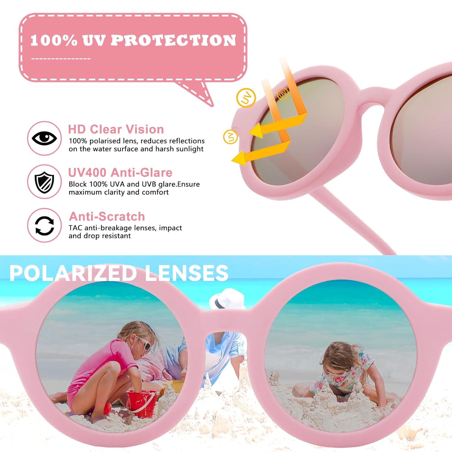 - Polarised & UV400 Protection – Keep your baby’s eyes safe in the sunshine! Our lenses are polarised and offer full UV400 protection for maximum eye safety.