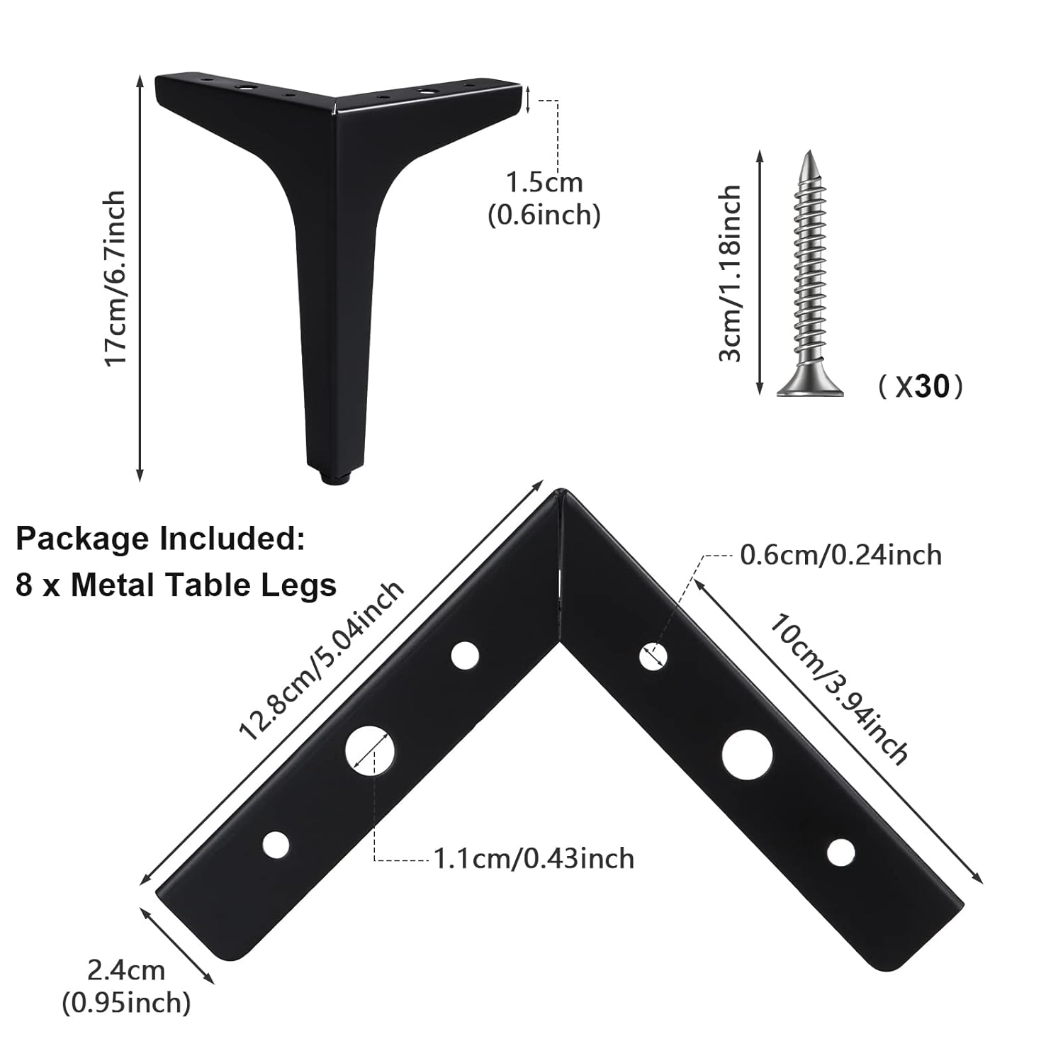 - Furniture Legs Set: You will get 8 pcs black metal furniture legs with 40pcs M4 screws. Each triangle table legs heigth is about 17cm.