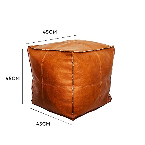 Louis Donne Unstuffed Square Faux Leather PU Pouf, Supersoft Handmade Ottoman Faux Moroccan Decor, Storage Solution, Foot Rest, Footstool, Pouffe Seat for Balcony Office Indoor,…