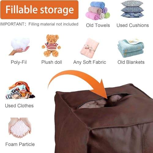 Louis Donne Unstuffed Square Faux Leather PU Pouf, Supersoft Handmade Ottoman Faux Moroccan Decor, Storage Solution, Foot Rest, Footstool, Pouffe Seat for Balcony Office Indoor,…
