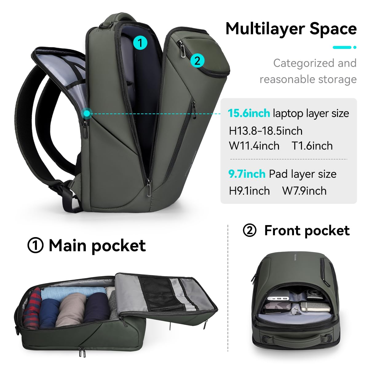 - 【YKK zipper and water-repllent】: Choose a durable YKK zipper and hydrophobic molecular waterproof material to keep your laptop, clothes and important documents safe from rain. Black model made of PU+nylon, gray/green model made of nylon.【Please note: Do not expose the backpack to heavy rain, the zippers are not waterproof.】