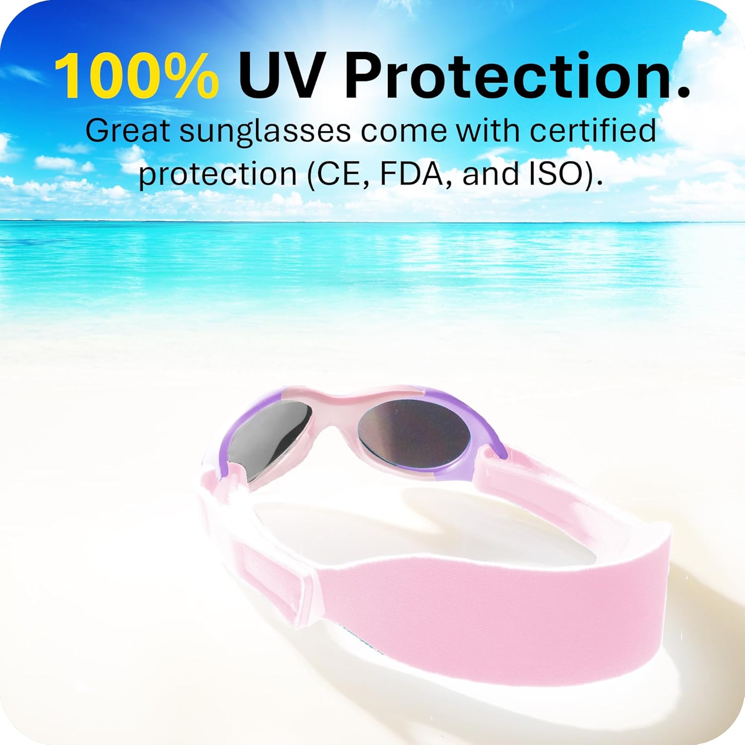 - Baby Friendly: Our light baby girl sunglasses will join them while playing in the water (Waterproof) or in the sun. Our newborn sunglasses will be their perfect partner. The frame is 100% BPA-free and non-toxic