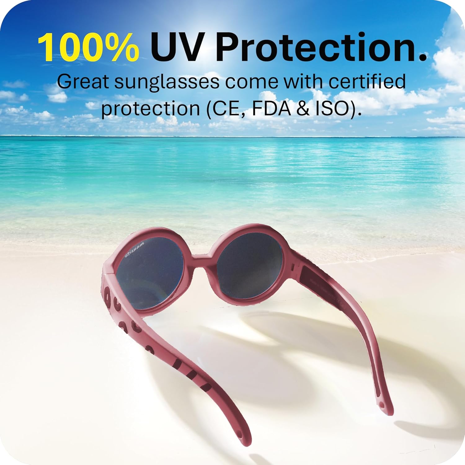 - Fit perfectly: Our comparison winner (as rated by vergleich.org’s kids’ sunglasses category) is designed for kids aged 6-24 months. We developed our toddler sunglasses girl with a soft frame and an adjustable/removable strap to make the most flexible and stay-in-place infant sunglasses