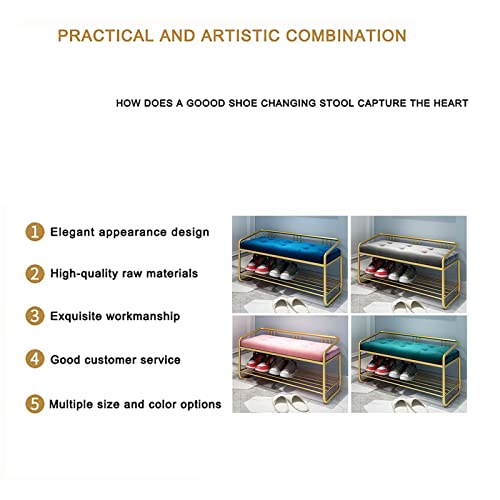 MAVCHANOLIA Shoe Bench Luxury Tufted Button Bench with Gold Shoe Rack in Entryway Soft Velvet Shoe Bench Seat Shoe Storage Organiser Modern Shoe Rack Entryway Bench Decor