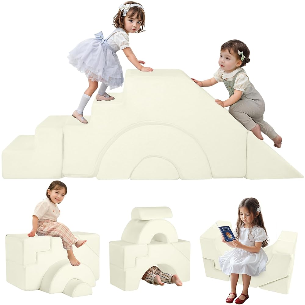 - [Versatile Kids Modular Couch] This kids sofa is not just for climbing! With its convertible and sectional design, you can adjust this playroom furniture, such as a modular kids seating, folding floor lounger, foam couch playset, toddler loveseat, or even a table and chair set, creating the perfect room for your child to read, play, or relax