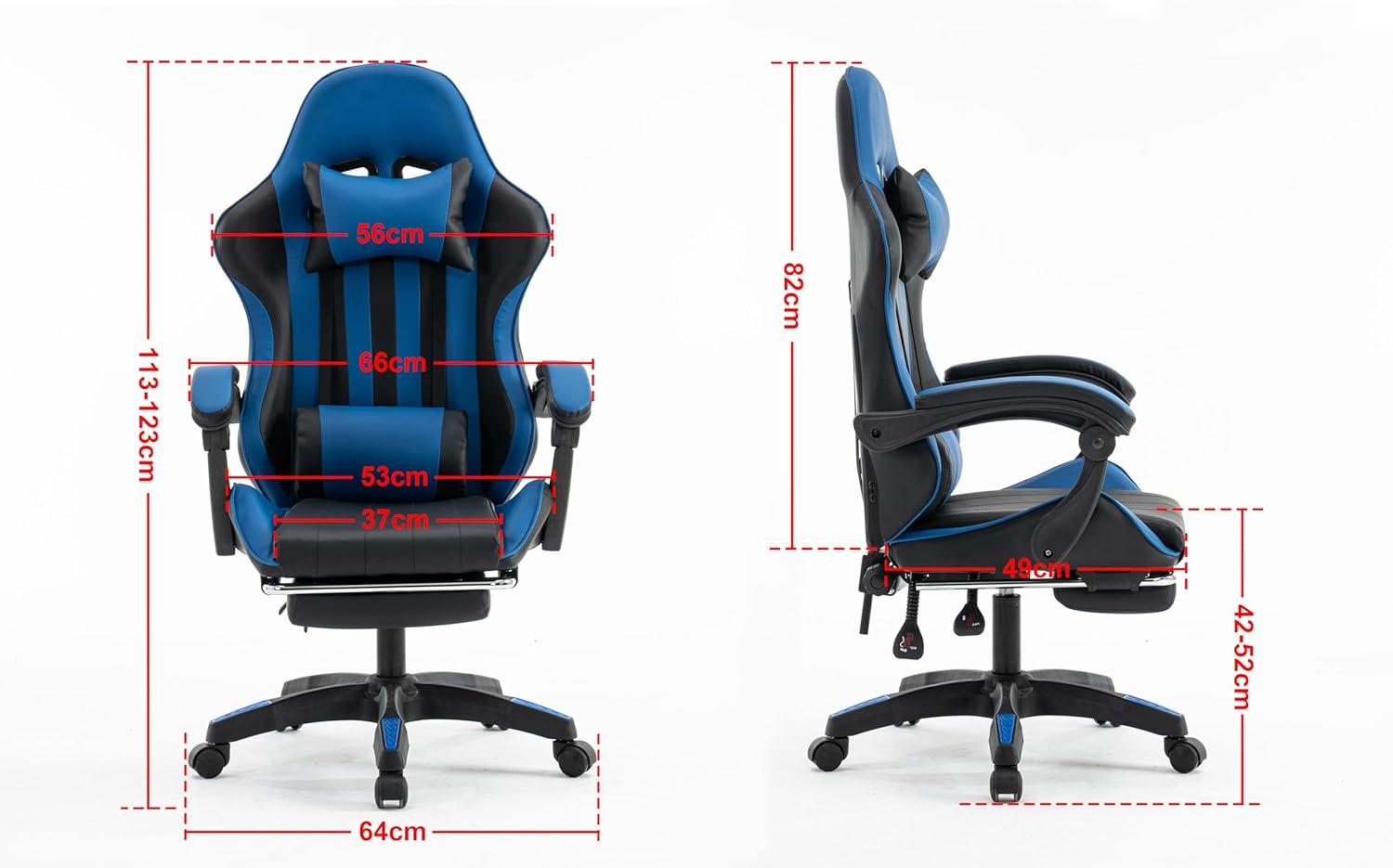 - Swivel Gaming Chair / Seat and Armrest Material is PU Leather / Adjustable Height between 113cm – 123cm/ Tilt and Upright Lock Function