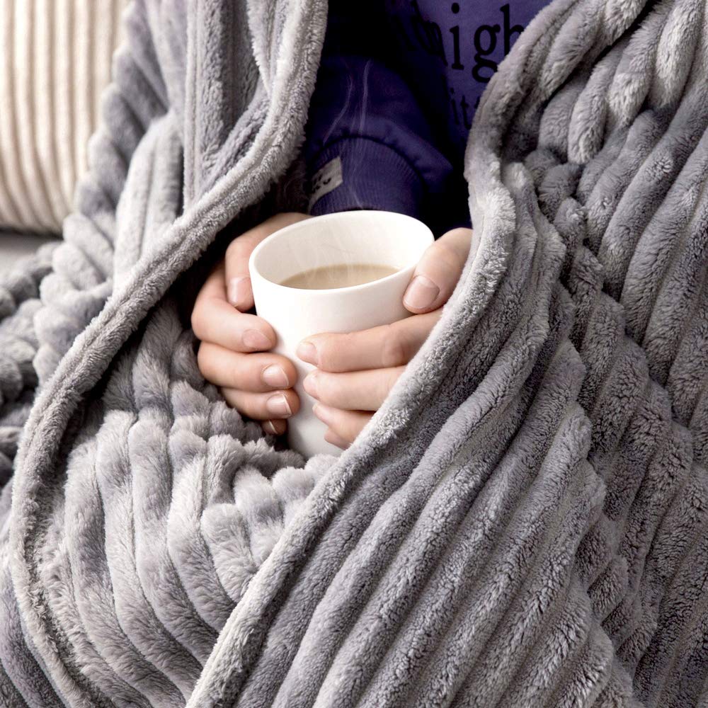 MIULEE Flannel Fleece Throw Blankets Soft Warm Comfortable Throws for Sofa Corduroy Fluffy Blanket Bed Throw for Bedroom Couch Travel Kids Bedroom Accessories 85x95Inch Grey