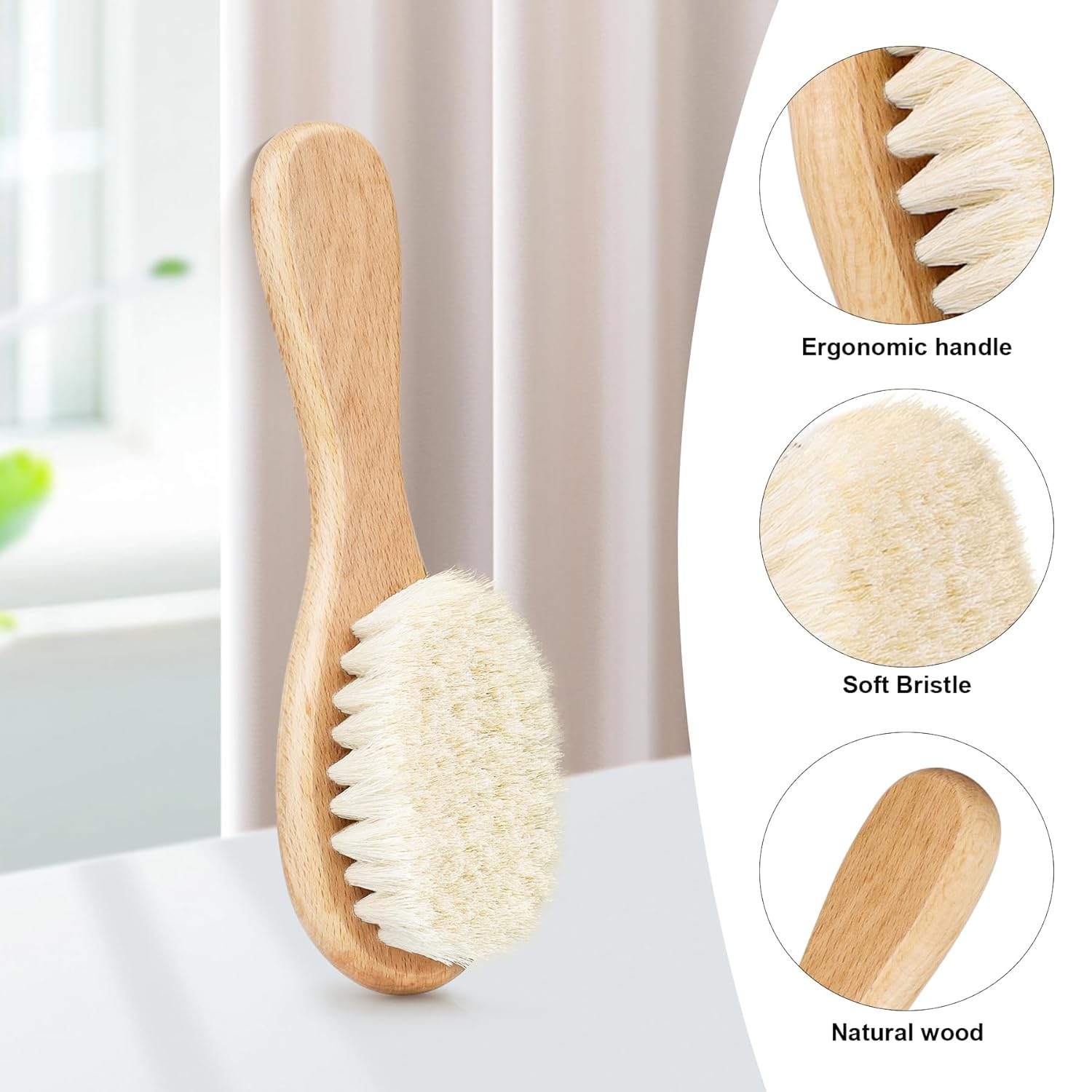 - 4)Eco-friendly & Safe Material: We use natural soft goat bristles, bamboo, beech wood for all our hairbrushes. The baby shower brush is made of silicone which is comfortable to use.