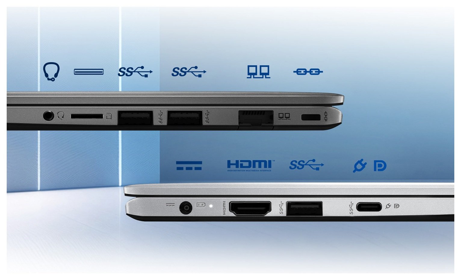 The Modern 14 provides all the ports you need! 3 ports USB-A, 1 port USB-C, 1 port Micro SD, and 1 port HDMI. You can charge while connecting devices simultaneously.