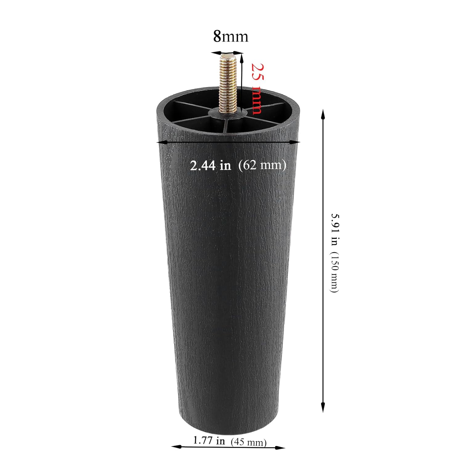2 reviews for MUKSEUT 12 PCS 6 Inch Plastic Furniture Legs, Black Sofa Legs with 8x25mm M8 T-nuts Screws, Sturdy Cabinet Legs for Household Furniture Support Fixing