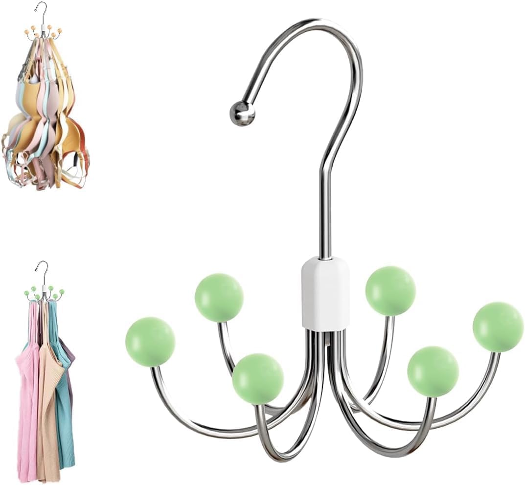 - 360° rotary hanger: Use 360° rotary hanger to enhance your closet tissue. This 360° smooth rotating hanger allows you to hang and find clothes, bags, scarves, tie, belt, sweatshirt, bra, hat, necklace and more easily. The 360° rotation function ensures that every item is accessible. With space-saving and labor-saving features, this hanger is a must-have for any closet.