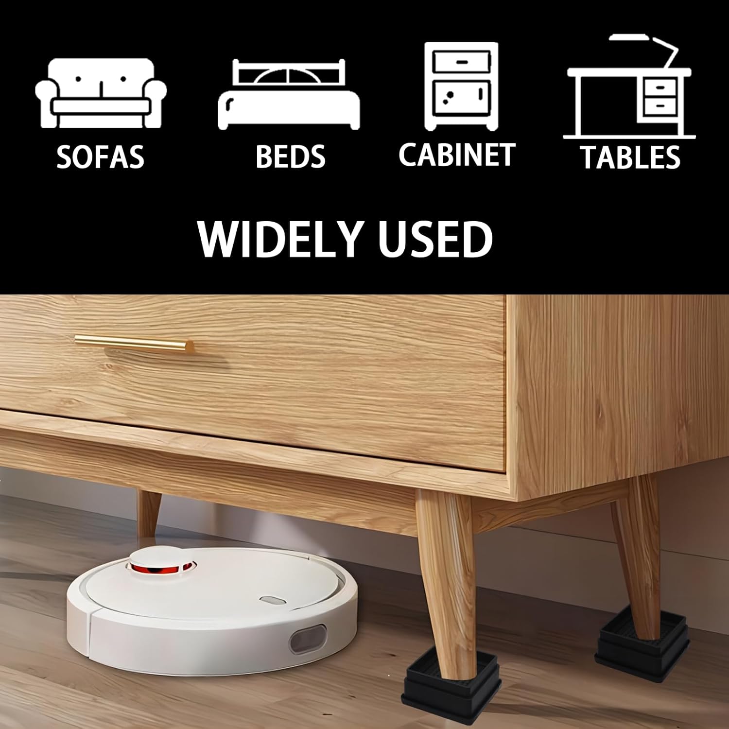 - 【Space Saving】The furniture lift block can help you create extra space, perfect for need to maximise storage space; table legs and bed risers can help you solve the problems of rust, inconsistent heights and inconvenient cleaning due to the low base of your furniture