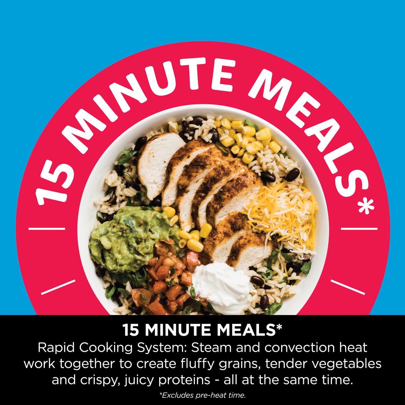 - 15-MINUTE MEALS* IN ONE POT: Choose your base, vegetables and protein to quickly create a complete 3-part meal in as little as 15 minutes* with the Speedi Meals function (*Excludes pre-heat time.)