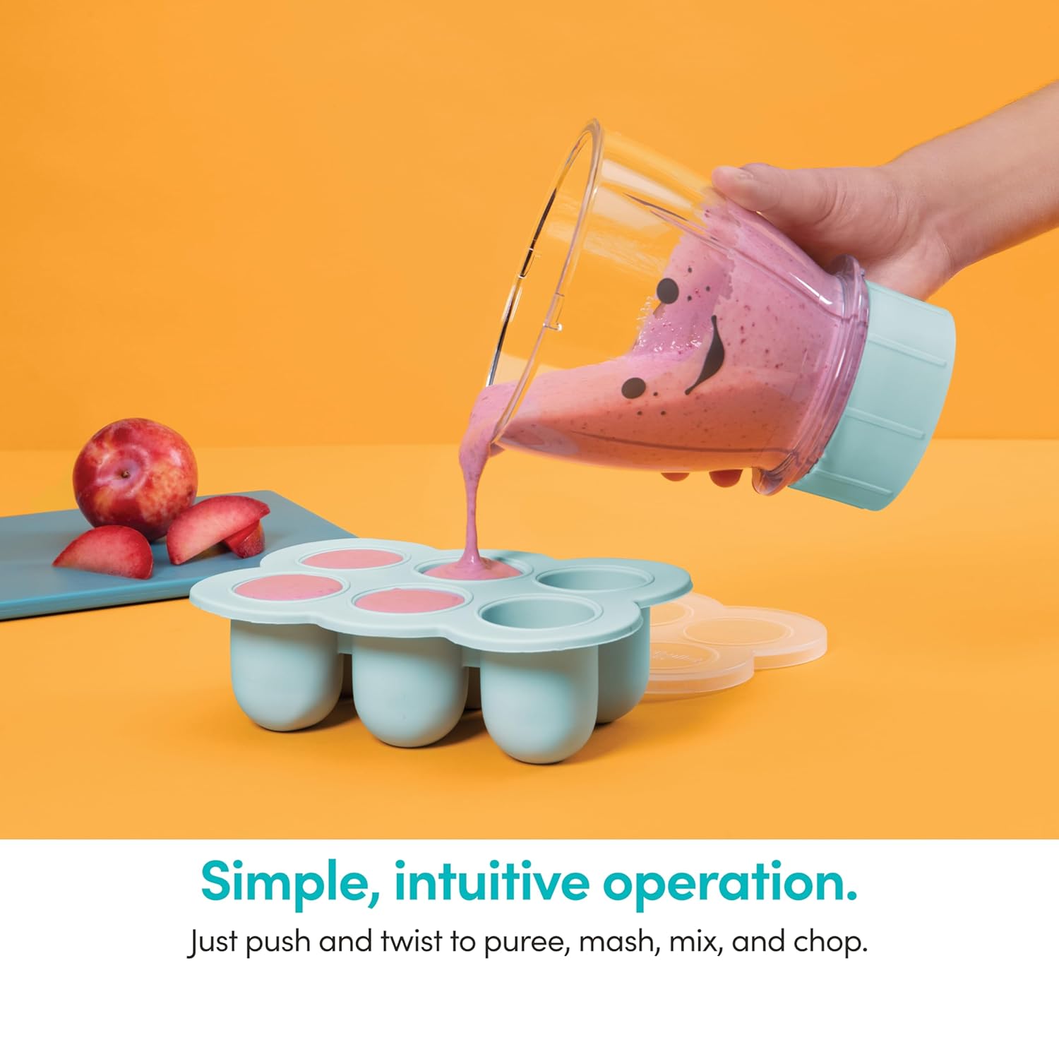 - Included: (1) 200 watt motor base, (1) baby, blending blade, (1) 32 ounce (900 milliliter) batch bowl with lid, (1) 12 ounce (355 milliliter) short cup with handles and re-sealable lid, (6) storage cups with date ring lids and storage tray, (1) silicone freezer tray with lid and recipe book