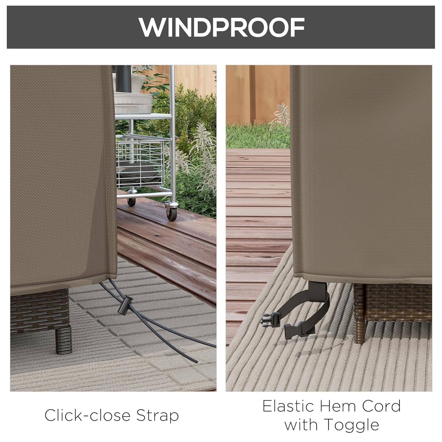 - Interlocking seams & tie fastenings: Tightly stitched for maximum protection outdoors. These outdoor furniture covers combined with a buckle fastening to securely keep in place, even in windy and temperamental weather.
