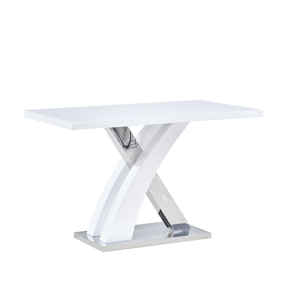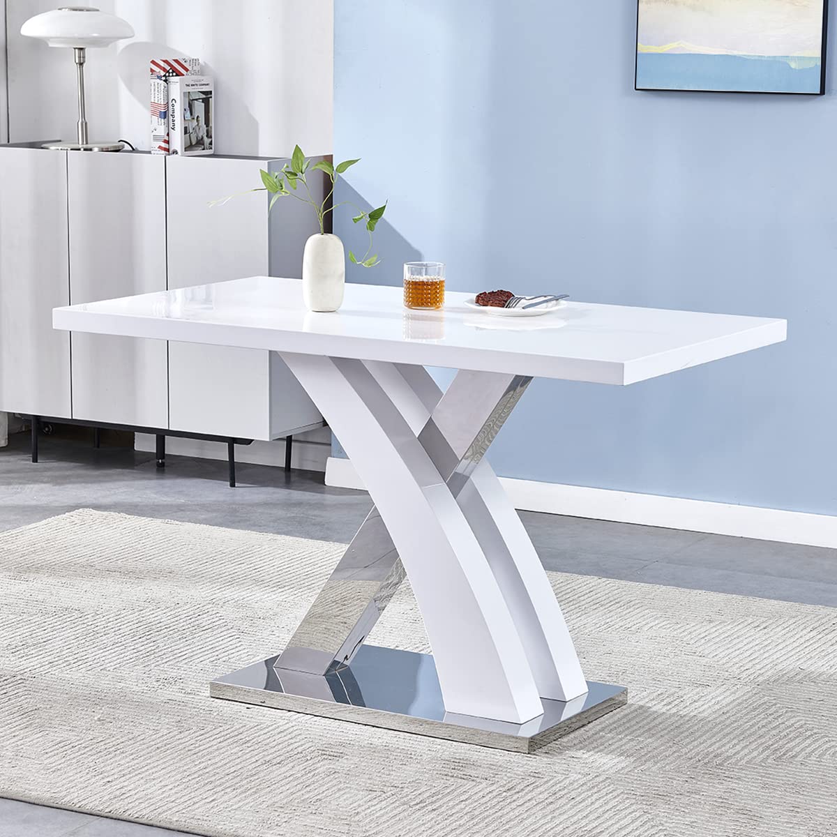 Panana Elegant White High Gloss Kitchen Dining Table 120CM X Shape With 4pcs Dining Chairs Set (White table with 4 Grey chairs)