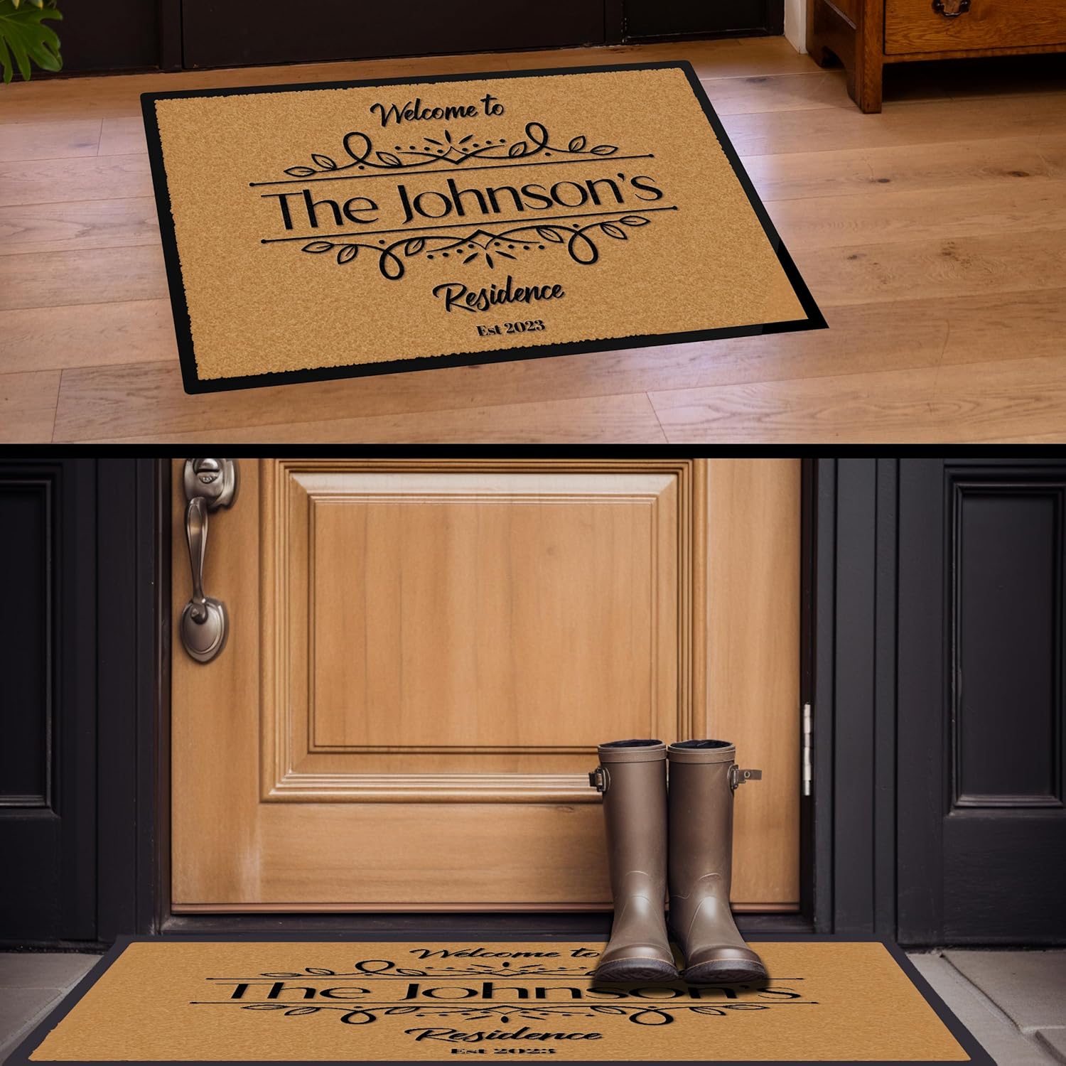 Personalised Family Name Floor Mat Non Slip Indoor Custom Doormat House Warming Gift, 90cm x 60cm, White