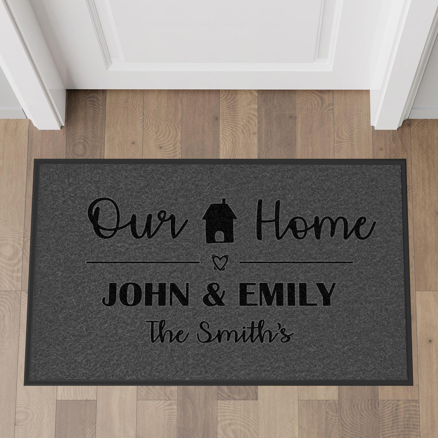 - Our floor mat personalised with Our Home and your names is a wonderful gift idea and adds a personalised welcoming touch to home decor