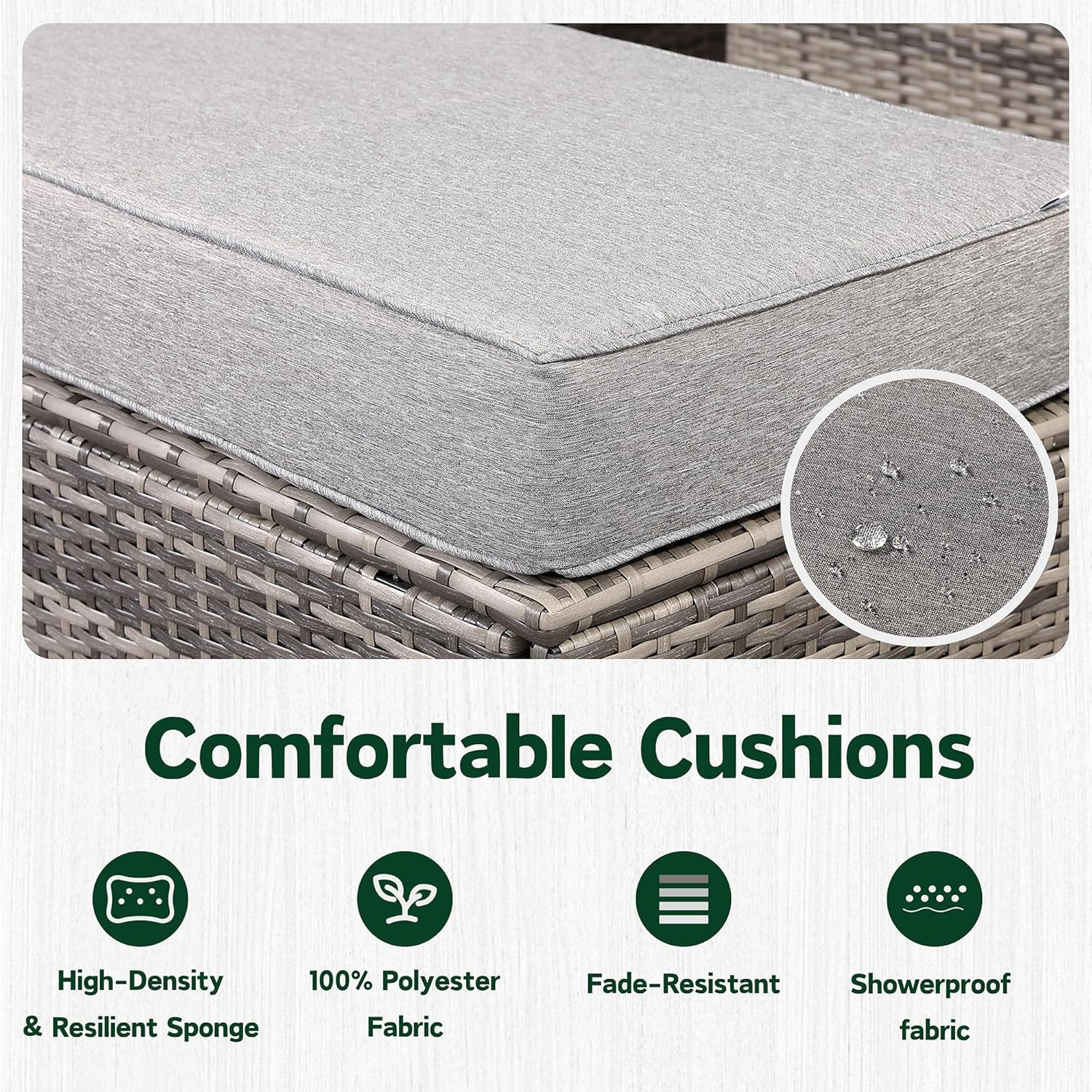 - Comfortable 12cm thick Seat Cushions with full foam insert:The seat feels more comfortable, and the seat cushion covers are made of showerproof material which can be removed and washed
