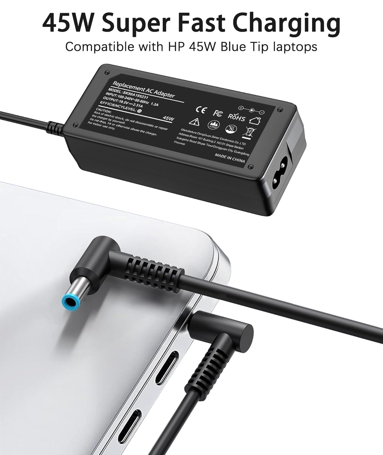 - Safe and Stable: The 45W HP Charger has built-in IC chip technology, with a variety of intelligent functions, which can prevent IC overcurrent, IV error voltage, SC short circuit, and IO internal overheating. CE/FCC/RoHS certified. And equipped with high-quality wire with anti-interference magnetic ring. It is more secure than other adapters. We provide a 12-month Maintenance, 30-day after-sales service.If you have any issue with the product, we will reply within 24 hours