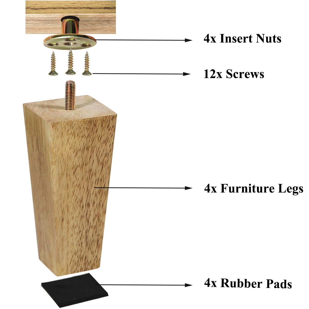 - Easy to install – Each wooden leg is attached with a metric M8 screw. Hardware is included for installation.