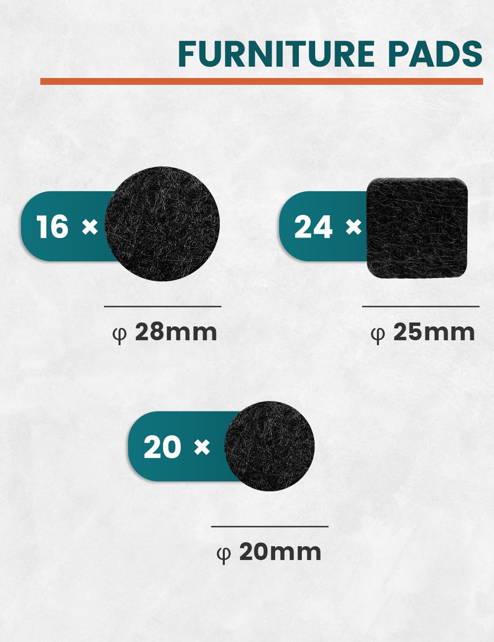 - 60PACKS FELT PADS SET — INCLUDE 20 SMALL ROUND(∅20mm), 16 LARGER ROUND(∅28mm), 24 SQUARE(25mm).