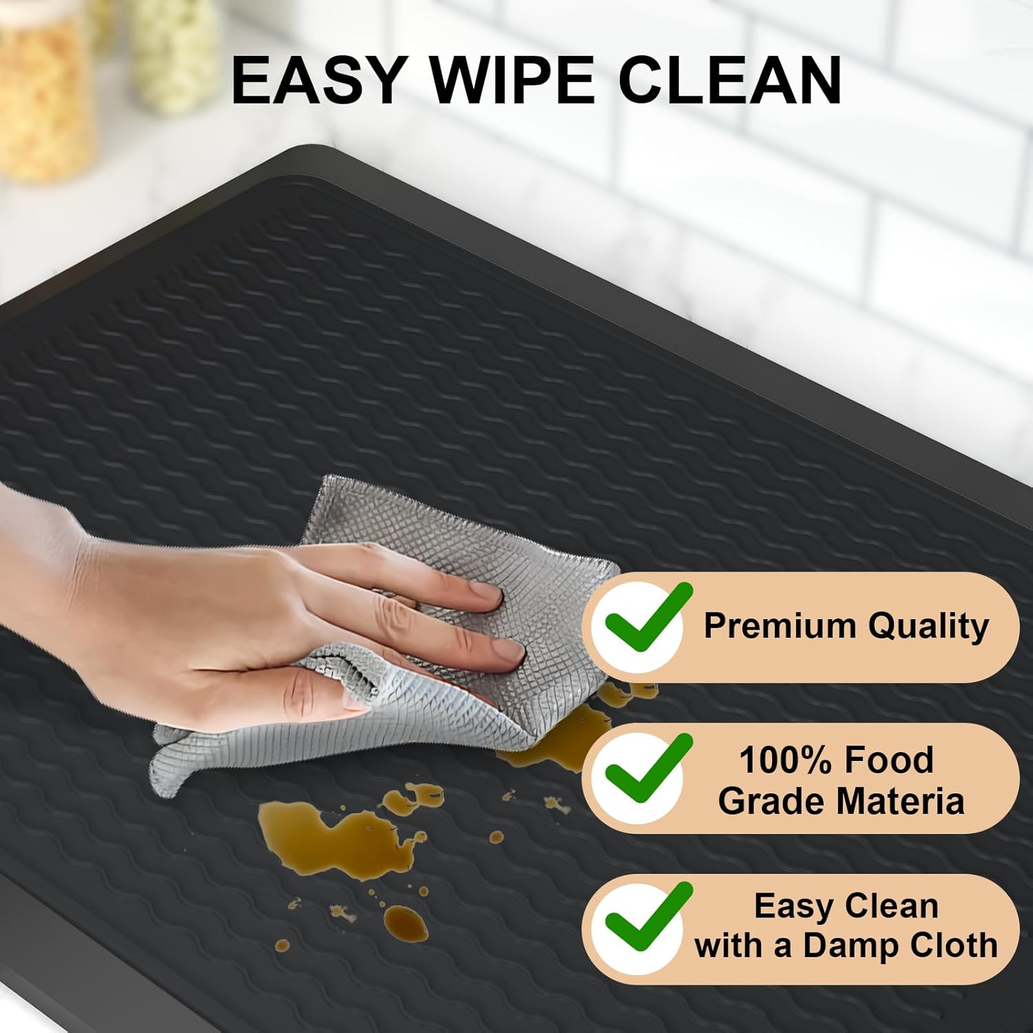 - Heat Resistance: Designed with rounded corners and wide raised ridges, it securely holds hot pots and pans while withstanding temperatures up to 450°F. The elevated ridges provide extra protection. Note: Avoid placing the pad on the stove if temperatures exceed 450°F to prevent heat damage.